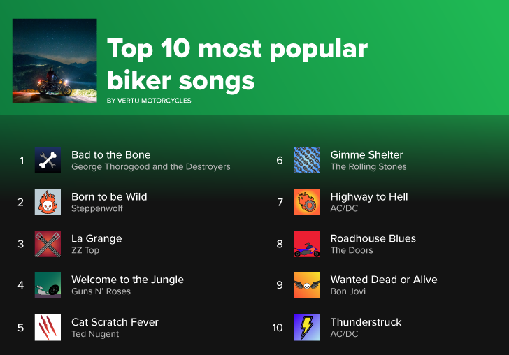 New research by Vertu Motorcycles finds Bad to the Bone (1982) by George Thorogood & the Destroyers is the most popular biker song, according to Spotify data.